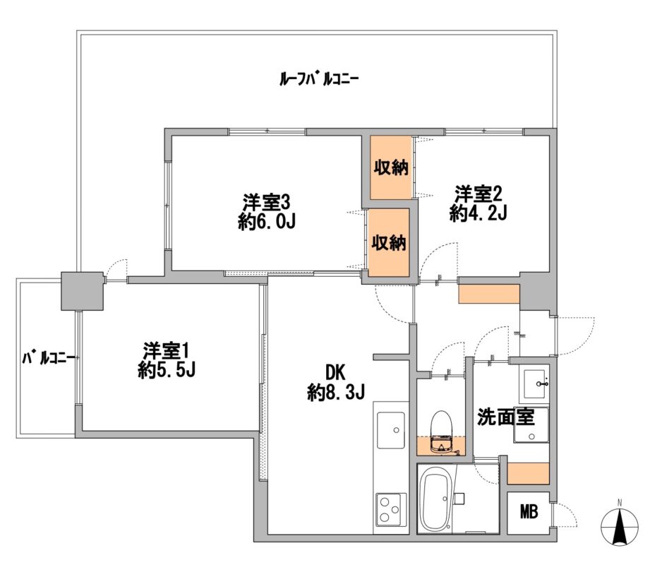 間取り | 3DK | 専有面積 | 54.21㎡ |